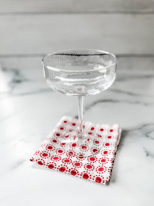 Handmade in India, our block-printed linens and cloth dinner napkins are as gorgeous as they are good for the environment. Like our other textiles, they are made from 100% pure cotton, and our local artisans use only natural dyes. We specially make our cloth dinner napkins in hopes that they will be a special addition to your memorable evening.